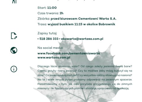 Już 18 października o godzinie 11:00 zapraszamy na nasz wyjątkowy, jesienny spacer botaniczny! Jesień to kluczowy moment w rocznym cyklu życia ekosystemów. Kiedy temperatura spada, przyroda intensywnie pracuje nad efektywnym przygotowaniem się do zimy. To…