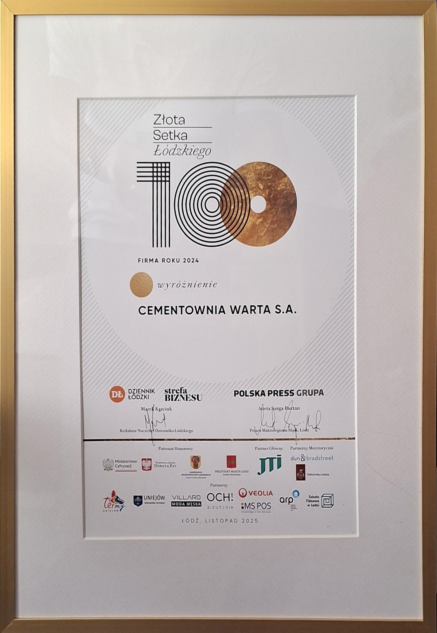 Tym bardziej jesteśmy dumni, że Cementownia Warta S.A. zajęła 3. miejsce w ogólnym zestawieniu w kategorii Firmy Roku 2024.