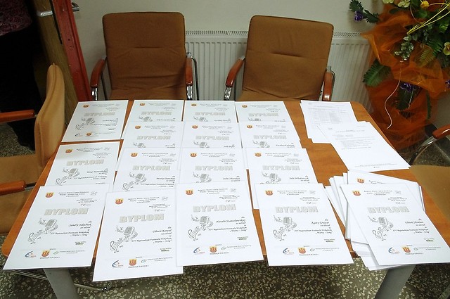 Wręczenia dyplomów i nagród dokonali organizatorzy oraz przedstawiciele Sponsorów: Wiceburmistrz Miasta i Gminy Działoszyn – Mariola Paśnik, Wiceprezes Zarządu Nadwarciańskiego Banku Spółdzielczego w Działoszynie – Bożena Wojtyra oraz Dyrektor ds.Technicznych Cementowni Warta S.A. – Marek Górnik.