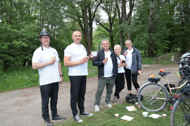 Rowerzyści wyposażeni przez organizatorów w koszulki z odblaskowym logotypem oraz w wodę wyruszyli spod biurowca cementowni w Trębaczewie, by następnie przez Sadowiec, Iwanowice, Ożegów dotrzeć do Siemkowic. Mimo kapryśnej pogody humory dopisywały i zadowolenie malowało się na twarzy przybywających na gorący posiłek wśród siemkowickich stawów. Po odpoczynku i krótkiej regeneracji wyruszono w drogę powrotną.