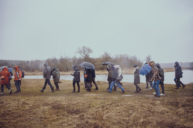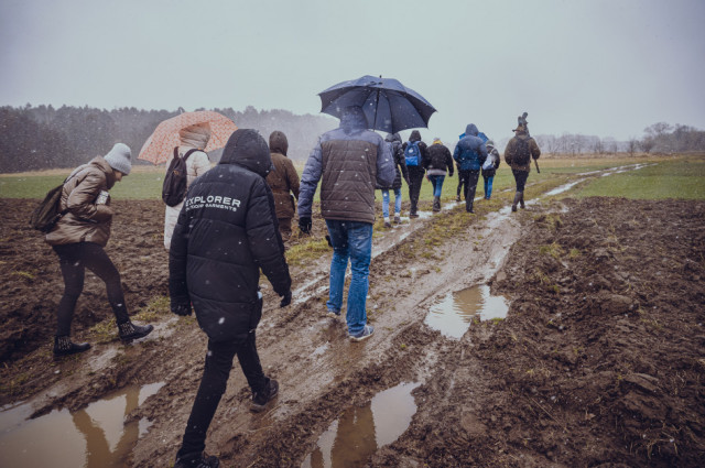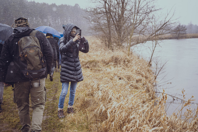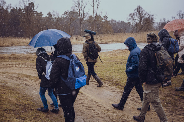 Tego poranka marzec niewątpliwie rzucił nam wszystkim wyzwanie. Śnieg z deszczem, całodniowy wiatr i ogólny chłód, to nie są wymarzone warunki na sobotni spacer. Jednak od pierwszych chwil pod biurowcem Cementowni Warta S.A., po wspólną herbatkę kończącą wyjście, nikt nie dał sobie popsuć dobrego humoru.