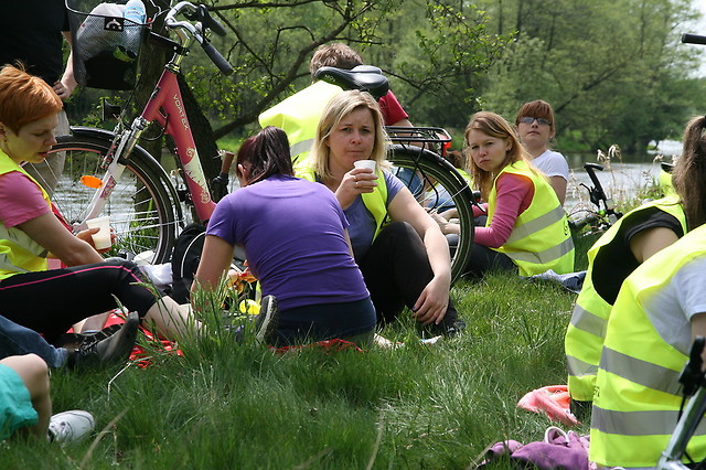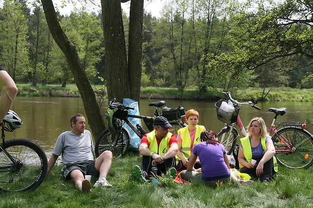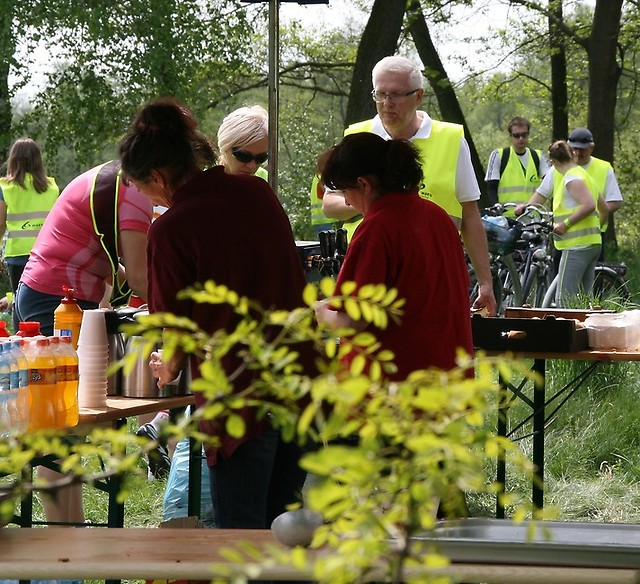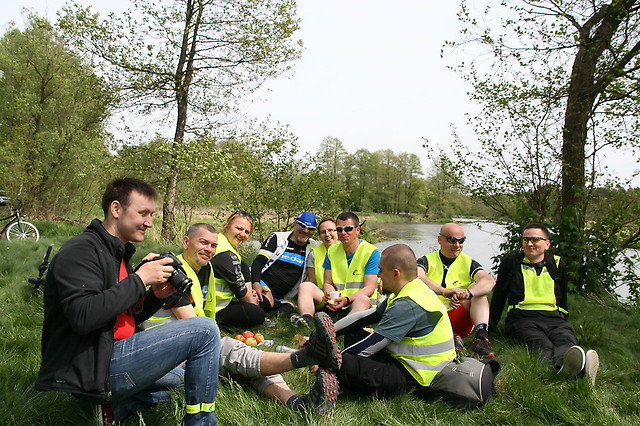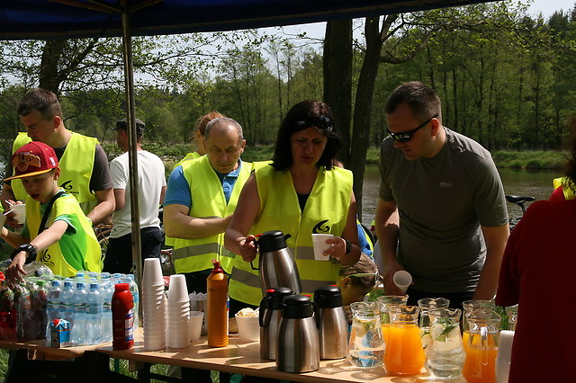Utrudzeni rowerzyści po pokonaniu 24 km osiągnęli pierwszy cel – polanę przy rzece Warta w Przywozie. Tutaj, na dłuższym postoju, zregenerowali swoje siły dzięki ciepłemu posiłkowi i orzeźwiającej kawie.