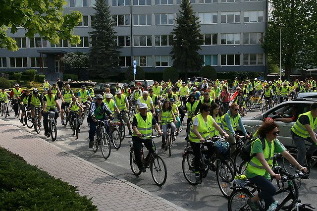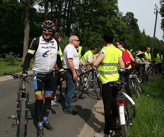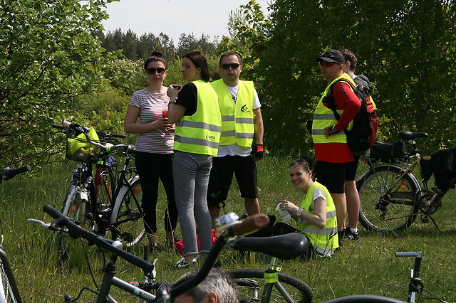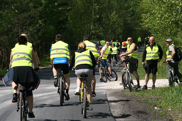 Rankiem 16 maja sprzed siedziby cementowni w kierunku Przywozu i zabytkowych Kurchanów Książęcych wyruszyło 203 rowerzystów. W ramach pakietu startowego każdy otrzymał kamizelkę oraz opaskę odblaskową, które pomagały w zbudowaniu bezpiecznej i widocznej kolumny na drodze. Słoneczna pogoda sprzyjała aktywnie wypoczywającym, a delikatny wiatr owiewał twarze uczestników rajdu. Prowadzącym grupę był jak zawsze niezawodny Jan Pasek, który wraz z Robertem Kojem i pajęczańskimi kolarzami dbali o bezpieczeństwo i sprawny przebieg jazdy. Droga prowadziła przez Grądy, Raciszyn, gdzie oglądaliśmy kapliczkę na skale, Lisowice, Żabi Staw, przy którym rozmowy zagłuszał rechot żab, Ogroble, Toporów do Przywozu. Po drodze chętni mięli możliwość obejrzenia w toporowskim kościele obrazu „Przemienienie Pańskie” autorstwa Jerzego Dudy-Gracza oraz mogiły książęcej pn. Kurchany Książęce.