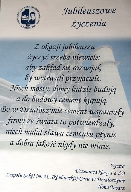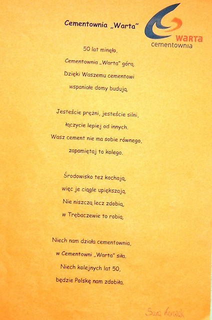 W konkursie zorganizowanym w ramach obchodów 50-lecia istnienia Cementowni Warta S.A. pt. „Z okazji jubileuszy życzę…” wzięło udział 175 prac wykonanych przez uczniów z 19 szkół powiatu pajęczańskiego. Jury w składzie: Jan Pasek, Ewa Gibas, Łukasz Walasik i Paulina Borkowska wyróżniło 23 prace, których autorzy otrzymali nagrody rzeczowe podczas Dnia Otwartego Cementowni Warta 7 czerwca 2014 roku.