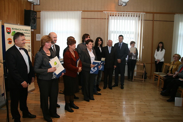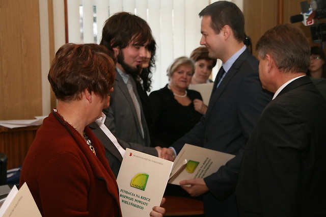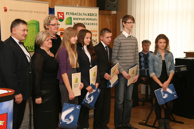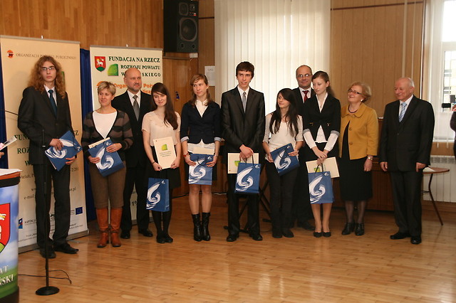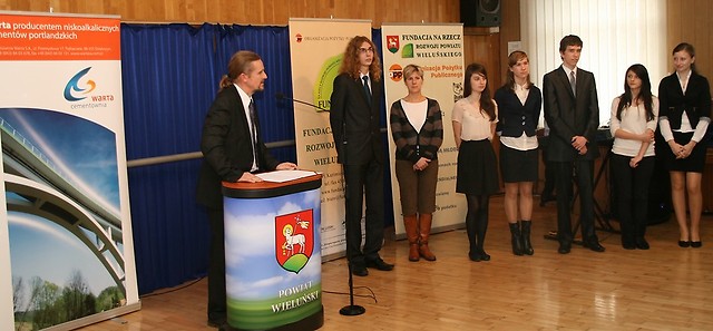 Stypendia obok Andrzeja Stępnia Starosty Wieluńskiego , Andrzeja Chowisa Prezesa Fundacji wręczał m.in. Łukasz Walasik Kierownik Działu Organizacji i Audytów reprezentujący Cementownię Warta.