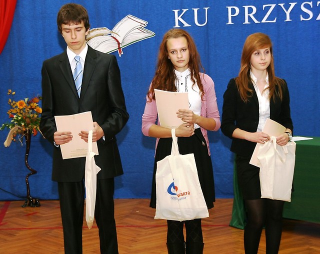 – w kategorii „Szkoły ponadgimnazjalne” trzynaście stypendiów po 250 zł miesięcznie, w tym jedno dla Izabeli Antczak współfinansowane przez Cementownię Warta SA