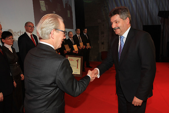 Pamiątkową statuetkę oraz dyplom w imieniu Cementowni „Warta” S.A. w Trębaczewie odebrał w trakcie Gali Jubileuszowej 7 lutego br. w Muzeum Miasta Łodzi Prezes Zarządu – Pan Dariusz Gawlak. Państwa obecność przyjmujemy jako świadectwo dobrych stosunków łączących Urząd Dozoru Technicznego z Cementownią „Wartą”, a także znaczenia jakie przywiązujecie Państwo do zagadnień związanych z bezpieczną eksploatacją urządzeń technicznych. – powiedział Andrzej Nitecki, Dyrektor Oddziału UDT w Łodzi.