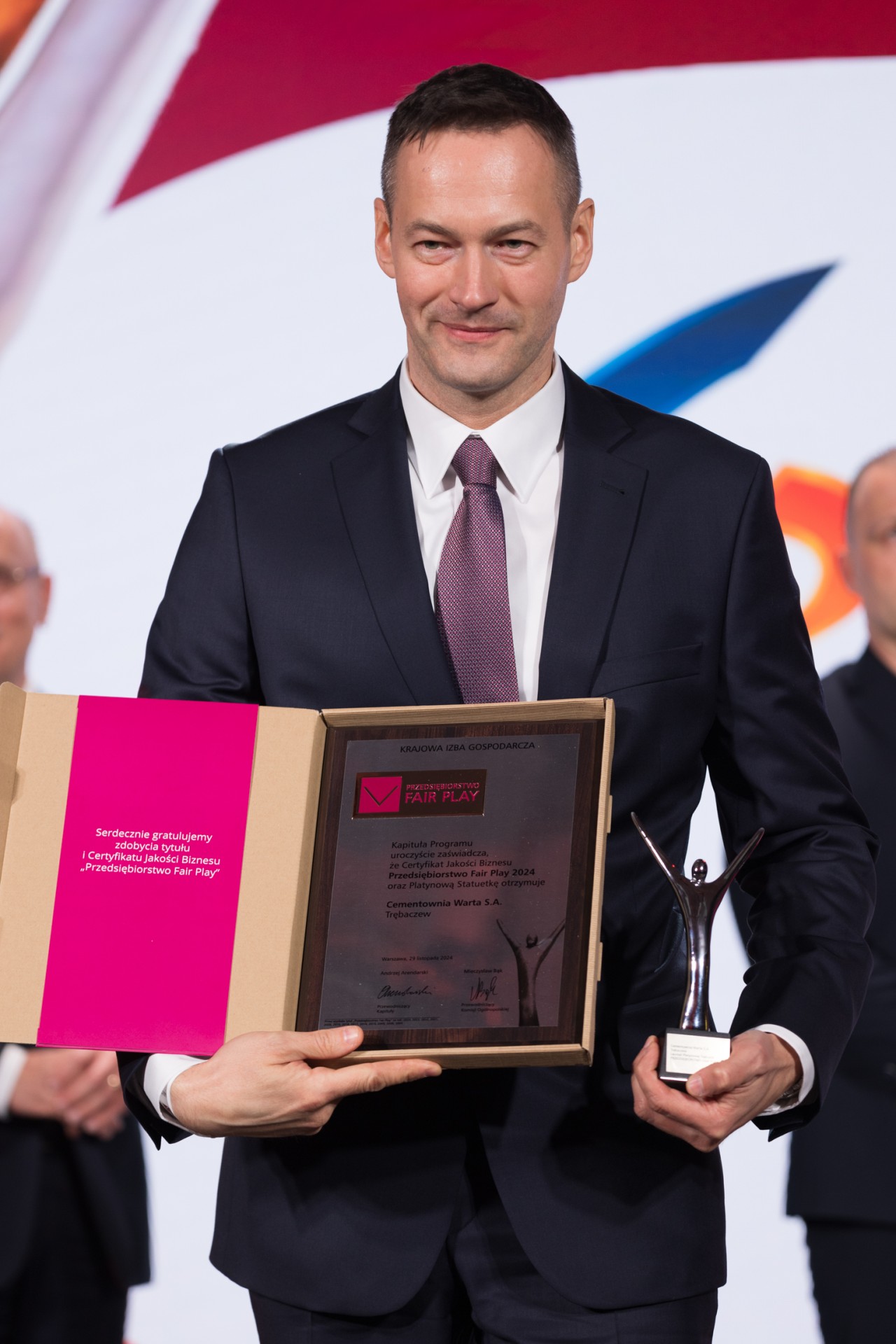 29 listopada 2024 r. już po raz 27. przyznano certyfikaty Przedsiębiorstwo Fair Play – jedne z najbardziej prestiżowych wyróżnień biznesowych w Polsce. W obecności wszystkich gości – przedsiębiorców, przedstawicieli władz, organizacji biznesowych i mediów, nagrody i certyfikaty trafiły do 164 firm z całej Polski. W imieniu Prezesa Cementowni Warta S.A. certyfikat i statuetkę odebrał Pan Łukasz Walasik.