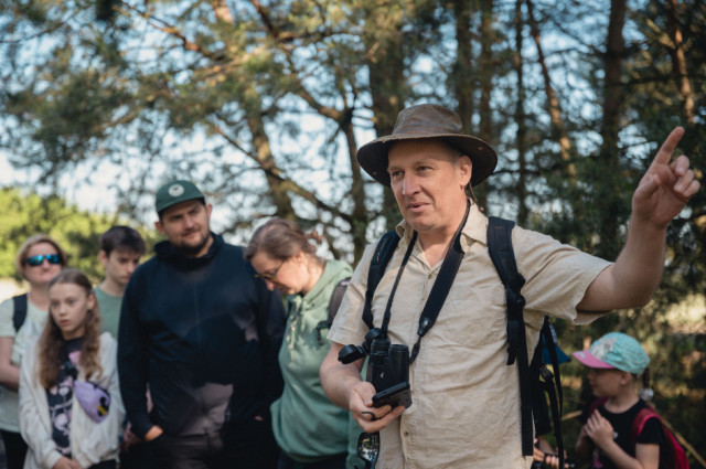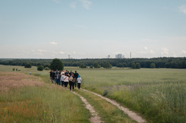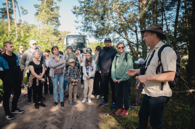 Autokarem dojechaliśmy do wsi Smolarze, gdzie wysiedliśmy na skraju lasu i pól, by powędrować leśną drogą wzdłuż granicy borów sosnowych w kierunku wschodnim.