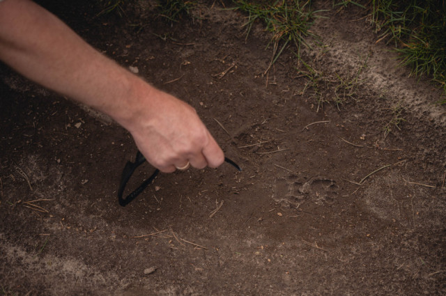 Poruszaliśmy się dalej wśród pól, ku północnemu wschodowi. Patrzyliśmy też pod nogi, więc na pozostałościach kałuż znaleźliśmy charakterystyczne tropy borsuka z palcami ułożonymi w równy rządek z długimi pazurami, a także odciski dzika, jelenia i sarny. Nad polami przeleciała czajka z okrągło zakończonymi, czarno-białymi skrzydłami. W oddali ciągnik orał pole otwierając dostęp do bogatych zasobów pokarmu – pędraków, dżdżownic i spłoszonych gryzoni – stołówka dla bociana białego i stad szpaków. Daleko na miedzy stał kogut bażanta, od czasu do czasu wydając charakterystyczny podwójny okrzyk. Nad polami tu i ówdzie można było dostrzec gołębie – hodowlane, jak i dzikie – grzywacze.