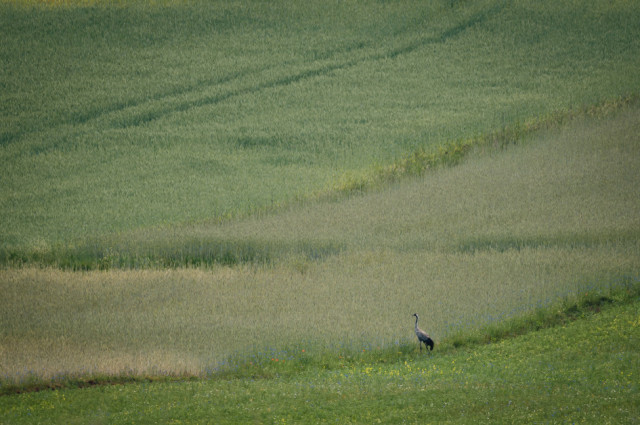 - Żuraw – najpierw pojedynczy wylądował na polu, następnie widzieliśmy parę w locie