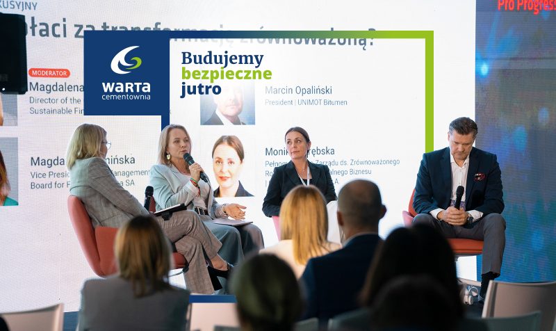 - podkreślała potrzebę zmiany narracji i sposobu myślenia o inwestycjach w zieloną transformację, pokazując, że Cementownia Warta S.A. ponosi milionowe nakłady inwestycyjne na adaptację do zmian klimatu, jednak nie traktuje ich w kategorii kosztu związanego z presją regulacyjną, lecz jako świadome, odpowiedzialne działanie, którego celem jest ochrona konkurencyjności, budowanie niezależności energetycznej i odporności na ryzyka ESG.
