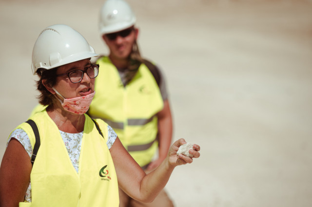 Zwiedzanie wyrobiska rozpoczęliśmy z zachowaniem niezbędnych zasad BHP – każdy uczestnik miał na sobie kask, kamizelkę odblaskową, a wtedy, gdy było to niezbędne, także maseczkę. Zachowywaliśmy również bezpieczną odległość od ścian kamieniołomu.